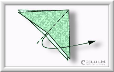 | Ahora tire de los dos extremos inferiores, “entre” los flancos superiores hacia arriba. Tiene alguna duda consulte el diagrama que se muestra. | Doble ahora en un extremo la cabeza como se muestra. Esto requiere algo de práctica… |